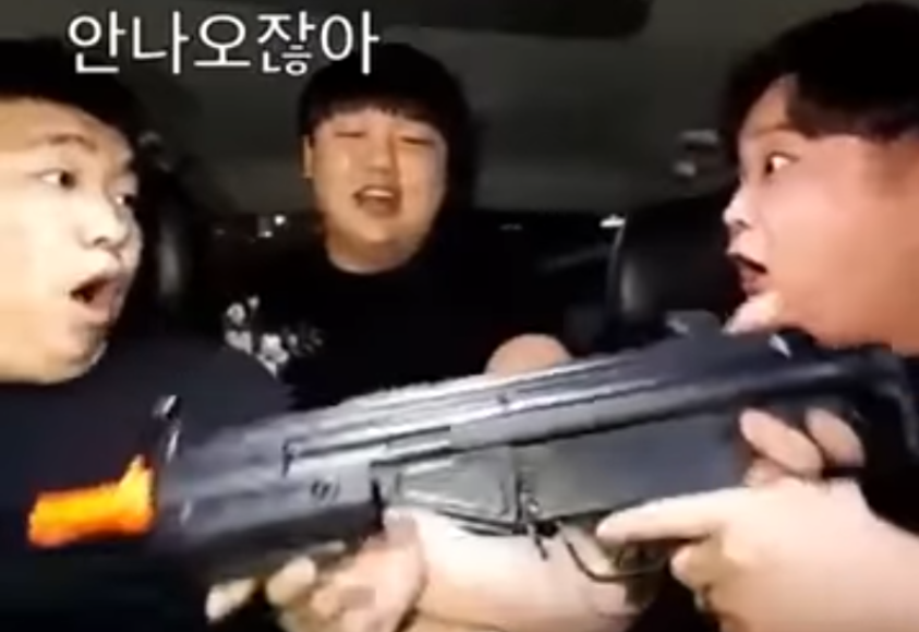 Широкую популярность в сети приобрело видео с третья братьями из Южной Кореи. Они сидят в машине и вертят в руках игрушечных автомат. Первые два демонстрируют, что автомат сломан. Но когда его направляют в третьего – неожиданно вылетает пулька.