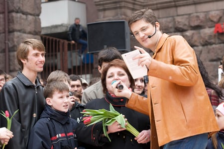 Эта программа не имела аналогов на ТВ, как, впрочем, и до сих пор. Народные таланты приходили в 5 часов утра на центральную площадь Киева для того, чтобы спеть на всю страну и попасть на один день в манящий мир шоу-бизнеса и выступить потом перед всей страной по ТВ. А те, кто проигрывал соперникам в песенном баттле оправлялись домой с трофеем – десятком яиц, что, согласитесь, тоже неплохо. Сейчас более современные аналоги затмили былую славу некогда народного караоке.