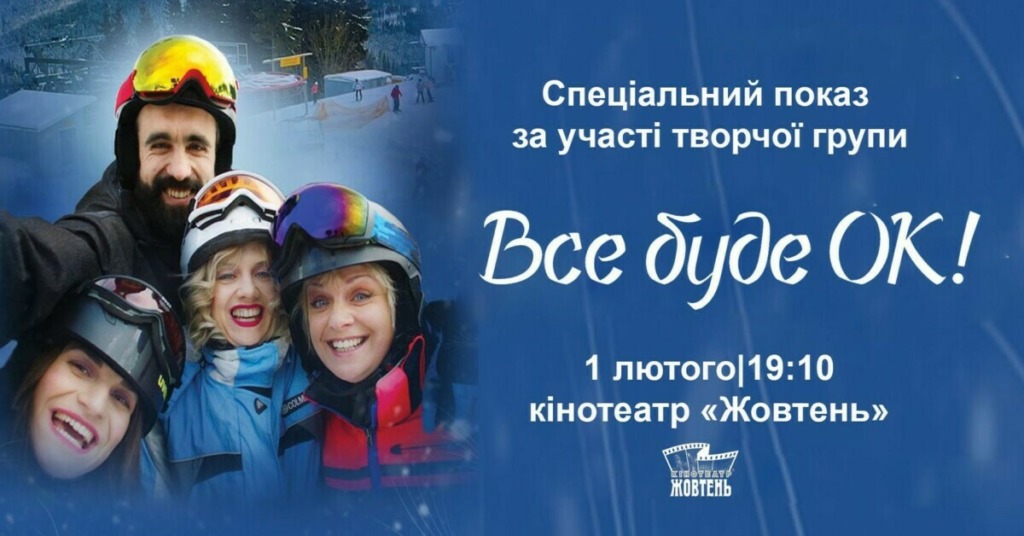 С 28 января в кинотеатрах Украины начался показ новой украинской комедии «Все будет ОК». Специальный показ пройдет в кинотеатре «Жовтень» 1 февраля. Начало — в 19:10.