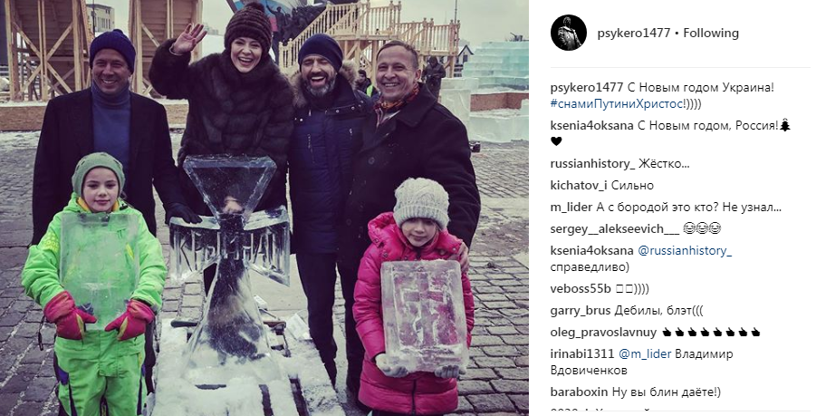 Кроме того, Охлобыстин этой же скульптурой «поздравил» украинцев с Новым годом.