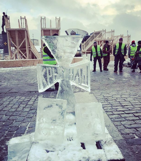Отметим, что фотография была сделана на фестивале «Ледовая Москва», во время которого изготовили ледяную скульптуру с надписью «Крымнаш».