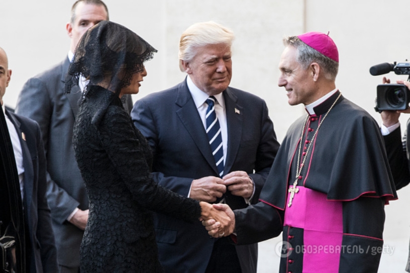 Главу США сопровождала делегация из 12 человек, в числе которых была супруга президента Мелания и его дочь Иванка. Общение с понтификом продолжалось 27 минут. Их общение не транслировалось. В связи с чем оно обросло множеством слухов и предположений о том, что же они же обсуждали сильные мира сего. Журналист Юрий Панченко по этому поводу даже сочинил анекдот, который получил широкую популярность в сети: