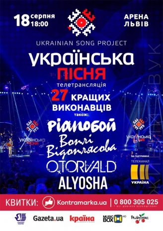 Национальный телепроект «Украинская песня / Ukrainian Song Project», который в этом году состоится 18 августа на «Арене Львов», объявил имена первых четырех хедлайнеров «Вопли Видоплясова», Pianoбой, О.Torvald и Alyosha.