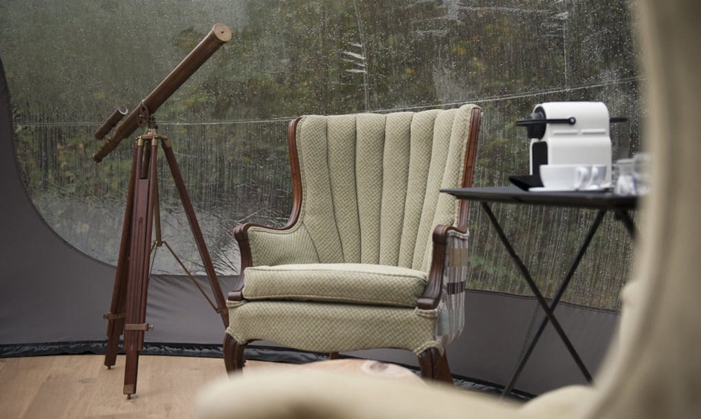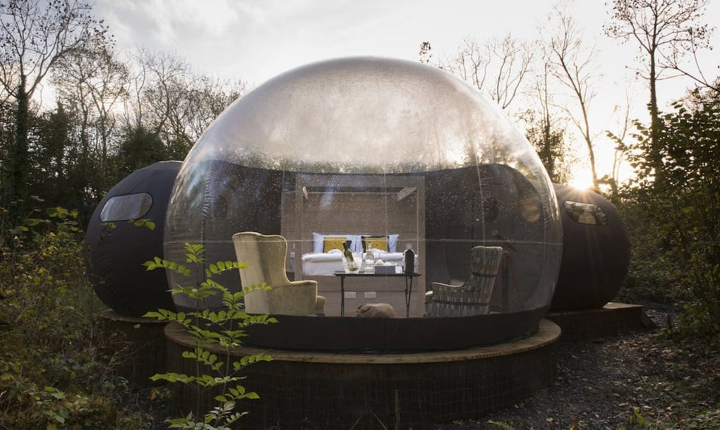 Гости могут выбирать между стандартным куполом Forest Bubble Dome и стеклянным домиком люкс-класса Premium Bubble Dome, в котором находиться ванная и более дорогая дизайнерская мебель.
