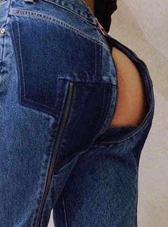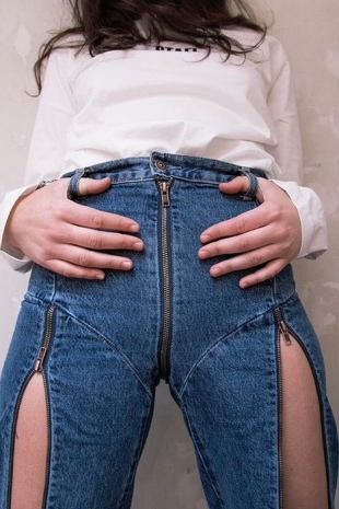 В результате сотрудничества компаний Levi’s и Vetements была создана серия джинсов, зипер на которых находится сзади. Также на брючинах предусмотрены симметричные молнии по бокам, которые позволяют сделать более широкие бёдра.