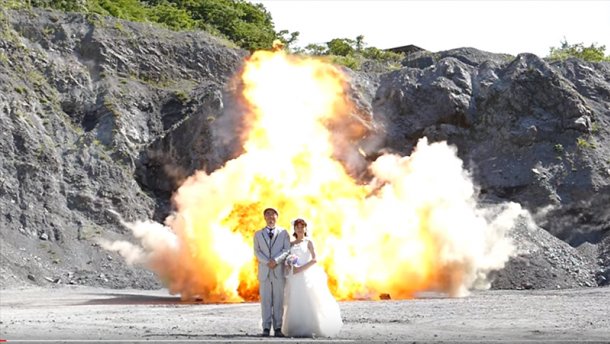Японские молодожены устроили фотосессию на фоне взрывов в стиле «экшн» kam 8 лет назад Во время свадебной фотосессии молодожены из Японии позировали на фоне мощных взрывов. Пара хотела сделать съемку в стиле голливудского боевика и использовала для этого специальную пиротехнику. Ролик с результатами съемки опубликовали на YouTube-канале 5 июня. За несколько дней ролик посмотрели более 22 тысячи раз.