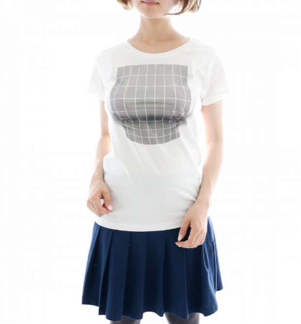 Модный японский бренд представил новую женскую футболку, оснащенную артом с оптической иллюзией, которая визуально увеличивает размер груди.