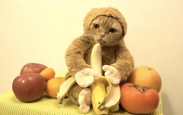 Создателями ролика выступил японский проект «10 Cats». Таким образом они решили оригинально поздравить подписчиков с праздниками. Шутники переодели кошку Цу в костюм символа года – обезьяны, и дали ей банан.