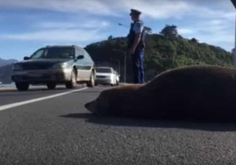 На трассе, ведущей в новозеландский Данидин, решил позагорать тюлень, которому понравилось лежать именно на разогретом асфальте, а не на траве рядом с ним. Несмотря на то, что на дороге вскоре образовалась пробка, водители и полиция были не против каприза дикого животного. Видео и фотографии с довольным тюленем стали хитом новостей во всей стране. Несмотря на умиление участников дорожного движения, вскоре тюленя всё же прогнали.