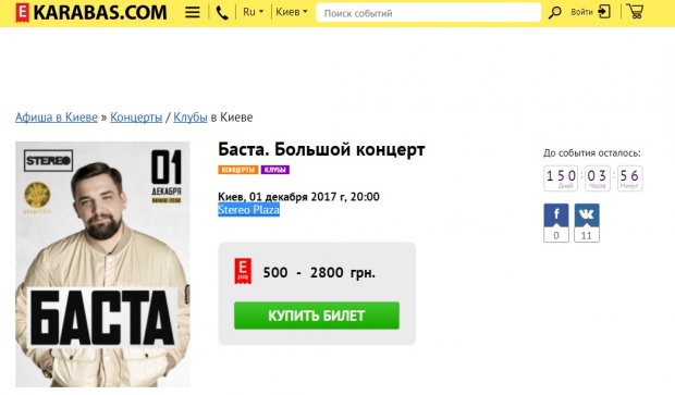 Российский рэпер Баста (Василий Вакуленко), который неоднократно выступал в аннексированном Крыму, заплинаровал очередной концерт в Киеве 1 декабря этого года. Афиша шоу уже появилась в сети. Концерт состоится в клубе Stereo Plaza.