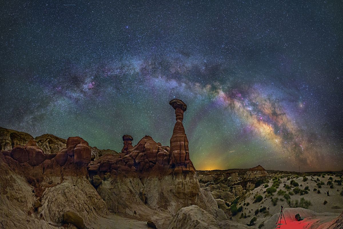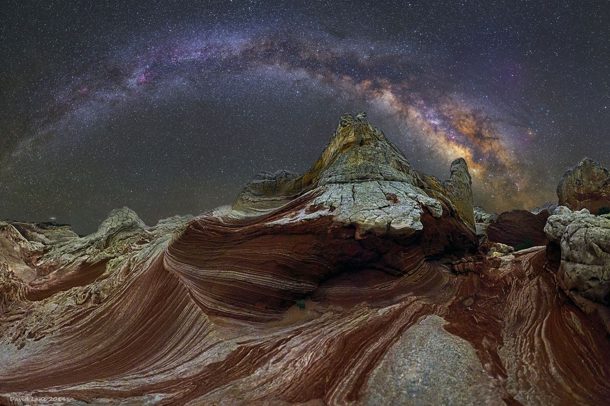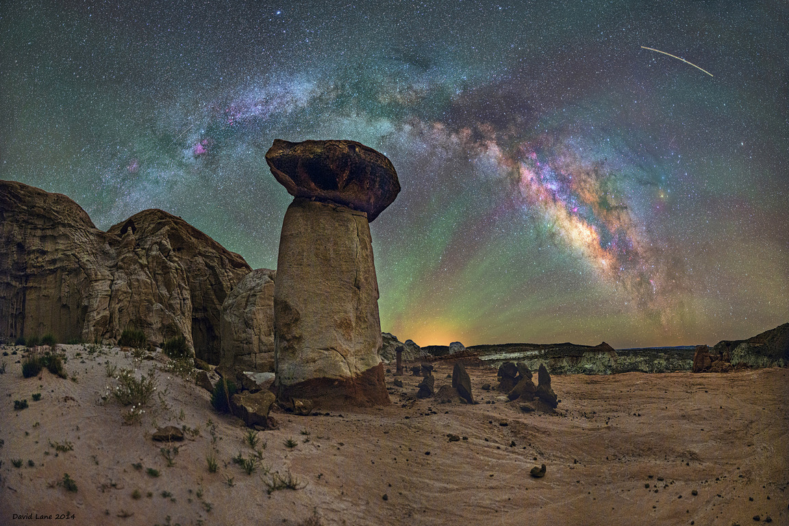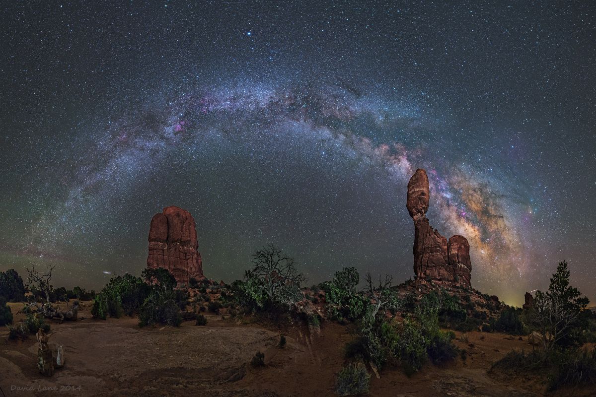 Основной изюминкой снимков американца является проходящая по центру кадра дуга нашей Галактики. Эта полоса Млечного Пути создается светом миллиардов звезд и выглядит на фотографиях Лейна поистине завораживающие.
