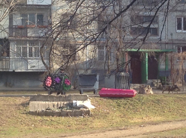 Перед одним жилым домом в Запорожье ночью появился гроб с венками, на которых было написано «Илье от друзей». Парень, которому адресовался этот подарок, решил выбросить гроб в мусорный ящик.