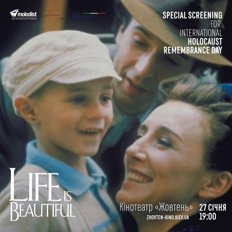 В день памяти жертв Холокоста 27 января в Киеве пройдет показ оскароносной ленты Роберто Бениньи «Жизнь прекрасна». Мероприятие состоится в кинотеатре «Жовтень».