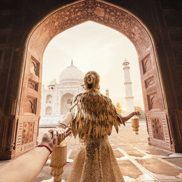 Известная серия фотографий Мурада Османна и его жены Натальи Захаровой «Следуй за мной» пополнилась фотосессией из Индии. В традиционной для себя манере они сфотографировались в наиболее знаковых туристических местах этой восточной страны.