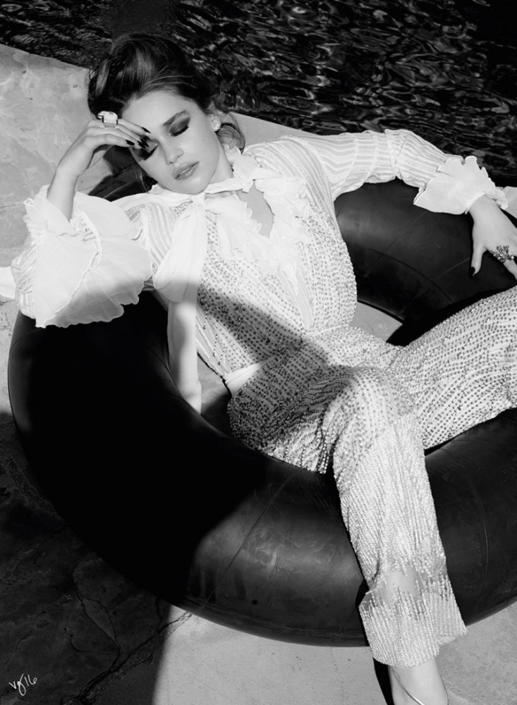 Она примерила соблазнительные наряды и не постеснялась вовсе обнажиться. Так, актриса откровенно демонстрирует декольте и красуется в томных позах и даже топлесс. 29-летняя звезда киносаги признается, что нечасто позволяет себе пикантные фотосессии, хоть ее героиня на экране нередко появляется обнаженной, снискав себе славу самого сексуального персонажа.