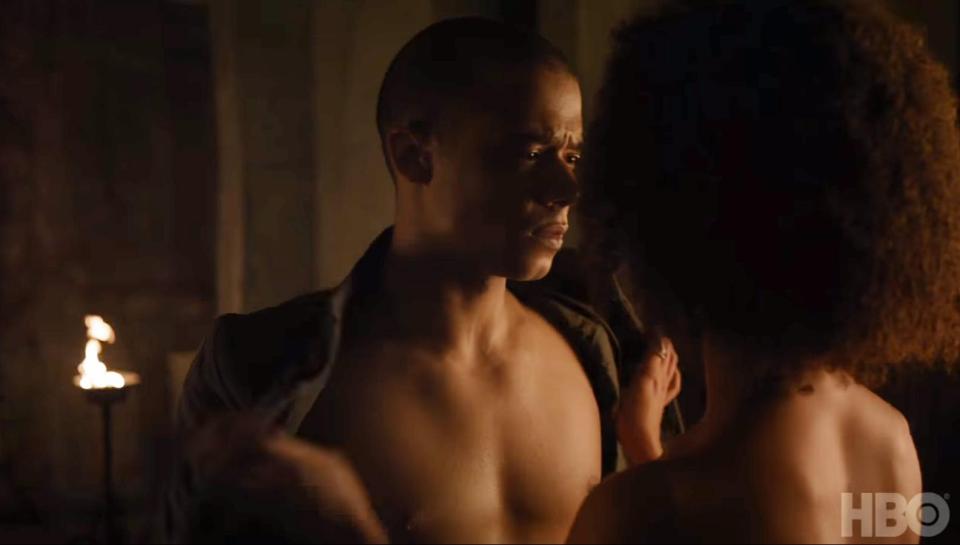 Британская актриса и звезда «Игры престолов» и «Форсаж» Натали Эмануэль, исполняющая в сериале роль служанки-переводчицы Мессандеи, снялась в жаркой постельной сцене со своим партнером по киносаге Джейкобом Андерсоном, играющем командира Безупречных Серого Червя.