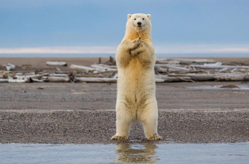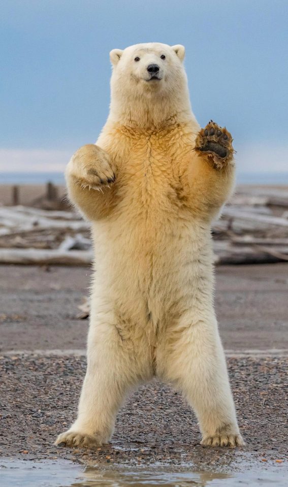 Женщина отправилась на прогулку, когда вдруг увидела белого медведя, который делал движения, похожие на популярный в 90-х танец «Макарена». В это время животные выходят охотиться на китов и их можно свободно встретить на берегу.